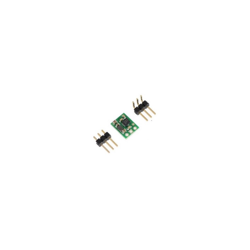 Pololu #2564 U1V10F5 Este regulador de voltaje de aumento (step-up) genera 5 V a partir de voltajes de entrada tan bajos como 0.5 V, y también cambia automáticamente a un modo lineal de regulación descendente cuando el voltaje de entrada excede la salida. Ideal para alimentar proyectos electrónicos de 5 V de 1 a 3 Celdas NiMH, NiCd o alcalinas o desde una sola celda de iones de litio.Permite corrientes de entrada de hasta 1.2 AApagado por sobretemperatura integradoVoltaje de entrada: 0.5 V a 5.5 VSalida fija de 5 V con una precisión del 4%Dimensiones: 0.35 " × 0.45" × 0.1"