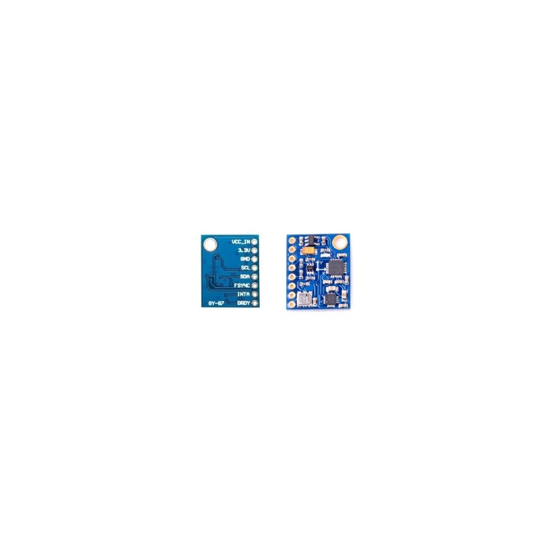 Este módulo es una unidad de medición inercial que cuenta con un acelerómetro digital de 3 ejes, un giroscopio de 3 ejes, magnetómetro digital de 3 ejes y sensor digital de presión absoluta.El acelerómetro tiene un rango de medición de ±16g, el giroscopio de ±2000°/s, el magnetómetro de ±8 Gauss y el sensor de presión de 300hPa a 1100hPa.Tiene interfaz de comunicación mediante SPI e I2C por lo que se puede trabajar fácilmente con cualquier microcontrolador.Comunmente empleado en aplicaciones de sistemas de navegación y detección de movimiento.Voltaje de operación: 3V - 5VDimensiones: 21.80x16.90x02.61 mm.Peso: 01 g.