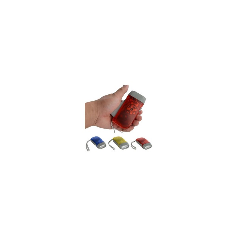 Mini lámpara led de recarga con dínamo manual.La lámpara se recarga oprimiendo con la mano el dínamo.Las pequeñas dimensiones de la lámpara (10 x 5 x 3 cm) hacen que se pueda llevar en la mano cómodamente, así como guardarla en cualquier lugar de la casa o en el auto.Esta nueva tecnología permite la recarga rápida de la lámpara con mínimo esfuerzo. Incluye su pila recargable interna para la recarga a través del dínamo.