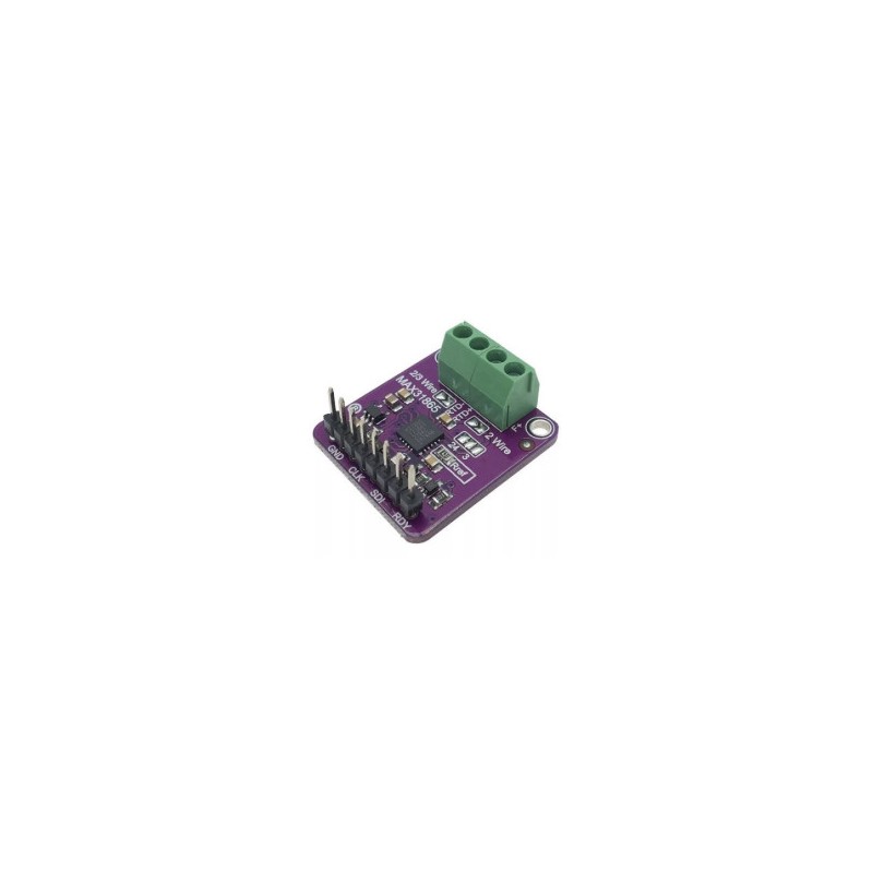 El módulo MAX31865 es un amplificador que está diseñado para leer mediciones de temperatura de los sensores tipo PT100 o PT1000, o también conocidos como detectores de temperatura de resistencia de platino (RTD).Características: Voltaje de operación: 3.3V a 5VResolución: 15 bits (0.03125°C)Precisión: 0.5°CTiempo de conversión: 21ms (máx.)Protección de entrada: +/- 45 VComunicación: Protocolo SPIRTD Soportados: PT100, PT1000No. de Hilos: 2, 3, 4Posee agujeros para montajeDimensiones: 28 x 25.3 x 3 mm