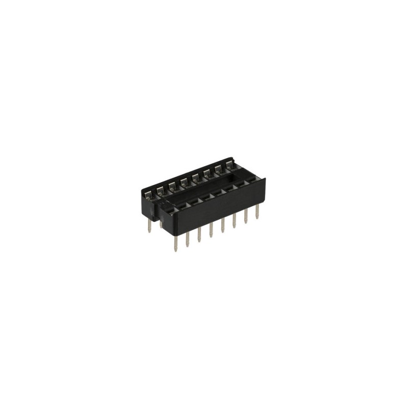Base para circuito integrado con pines o agujas que se soldan a una placa de proyectos permitiéndote montar o desmontar un circuito integrado sin tener la necesidad de soldarlo y así poder usarlo nuevamente en diferentes prácticas o proyectos electrónicos.