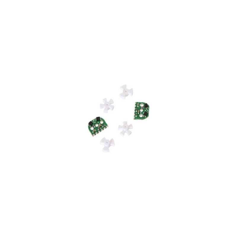Este kit consiste en dos placas de sensores, dos ruedas de encoder de 3 dientes, y dos ruedas de encoder de 5 dientes. El sistema instalado no excede la sección transversal 12 mm × 10 mm de los motores y se extiende sólo 5 mm más allá de la tapa de extremo del motor de plástico. La rueda de 3 dientes proporciona 12 pulsos por revolución, el uso de la rueda de 5 dientes produce 20 pulsos por revolución. Esta versión está diseñada para su uso en 5V.https://www.pololu.com/product/2590