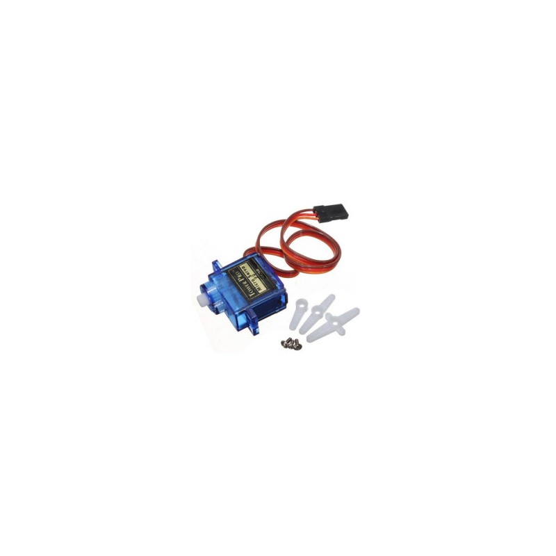 Servomotor pequeño y económico de gran calidad que permite el control de posición en un ángulo de 0 a 180°.Utilizado ampliamente en aplicaciones de poca carga y robótica estudiantil.Voltaje de funcionamiento: 3.5V a 6VVelocidad de operación sin carga:0.12 segundos / 60 grados (4.8V)0.10 segundos / 60 grados (6.0V)Ángulo de rotación: 180°Ancho de pulso: 500-2400 µsTamaño: 23x12.2x29mmPeso: 13g
